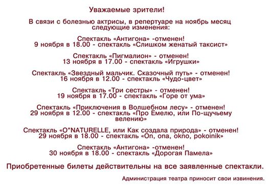 Приобретенные билеты действительны на спектакли, которыми заменены анонсированные.