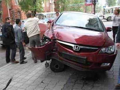 Авария произошла сегодня утром в центре Иркутска. В районе торгового центра «Фортуна плаза» красная «Хонда-Цивик» вылетела на тротуар, снесла фонарный бетонный столб и врезалась в витрину магазина