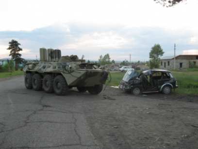 - По предварительным данным БТР при повороте налево не уступил дорогу движущемуся по встречной полосе автомобилю «Нива», - пояснил сотрудник пресс-службы ГУВД по Иркутской области Игорь Медведев.