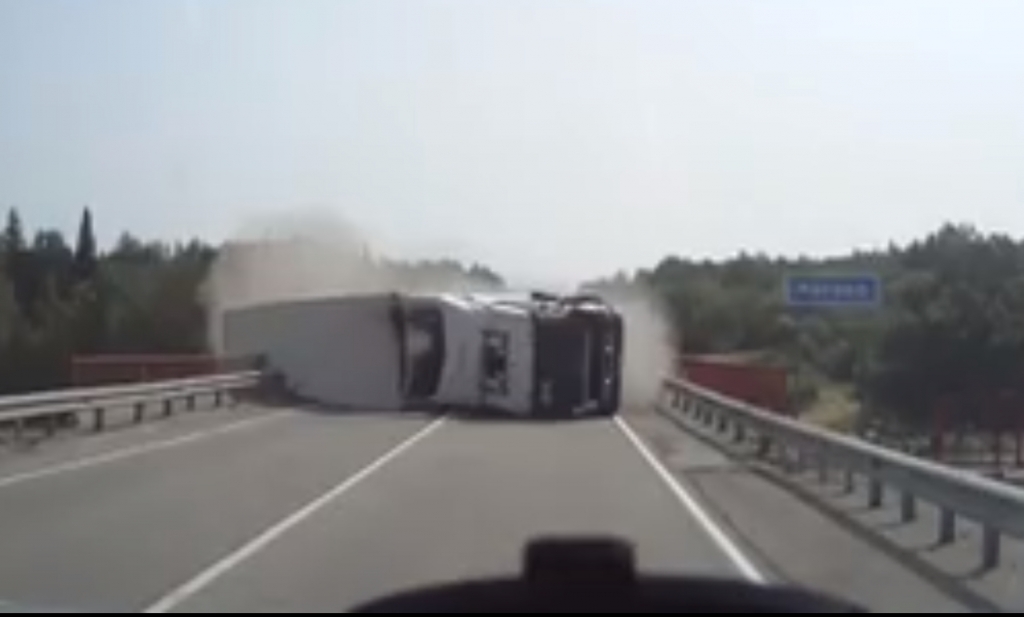 Накануне один из очевидцев аварии выложил в соцсети запись со своего видеорегистратора. Стало понятно, что перевернувшаяся фура вполне могла налететь на оказавшиеся рядом автомобили. Несмотря на то, что фуру протащило на огромной скорости, водители успели затормозить.