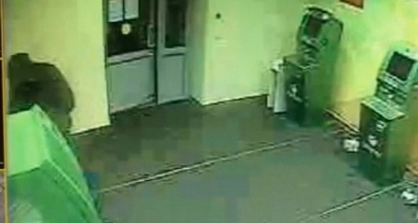 На видеозаписи видно, как неизвестный в маске зашел в здание банка с пакетом, а спустя несколько секунд вышел оттуда, сообщает сайт «Номеродин».