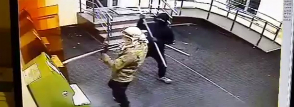 Двое мужчин с монтировками попытались выкрасть банкомат. Они выломали дверь и 20 секунд старались оторвать большую «кассу» от стены.