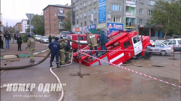 Как прокомментировал «Байкал-Daily» начальник управления дорожного строительства Улан-Удэ Евгений Соболев, который сейчас находится на месте аварии, полость в асфальте, скорее всего, образовалась по причине работ «БКС». Пожарной машины на месте уже нет, сейчас «БКС» откачивают воду, они и будут восстанавливать дорожное полотно.