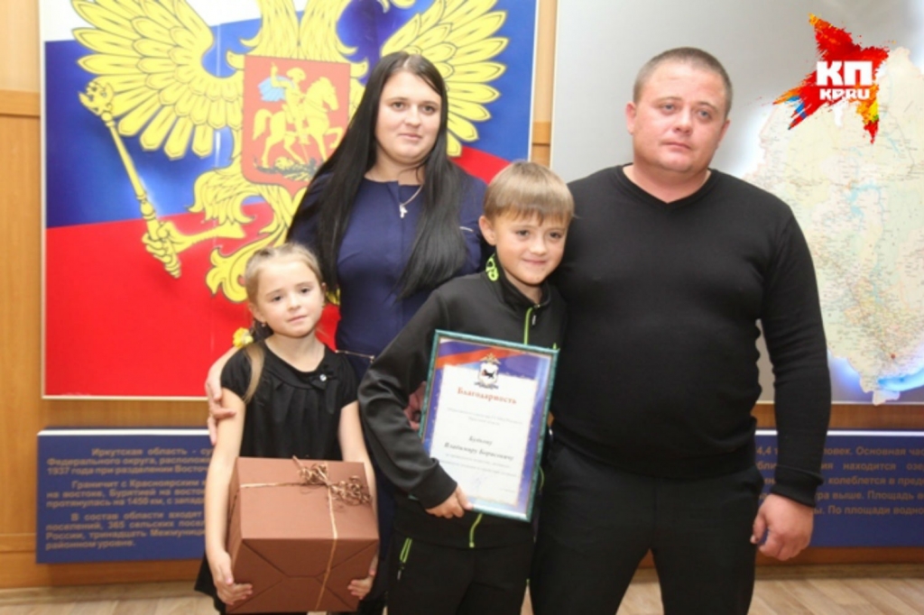 За отвагу Владимира решили отметить. Наградили на заседании общественного совета ГУ МВД по Иркутской области: вручили грамоту и подарок. На церемонию герой пришел с группой поддержки: женой Татьяной, сыном Владиславом и 7-летней дочуркой Полиной.