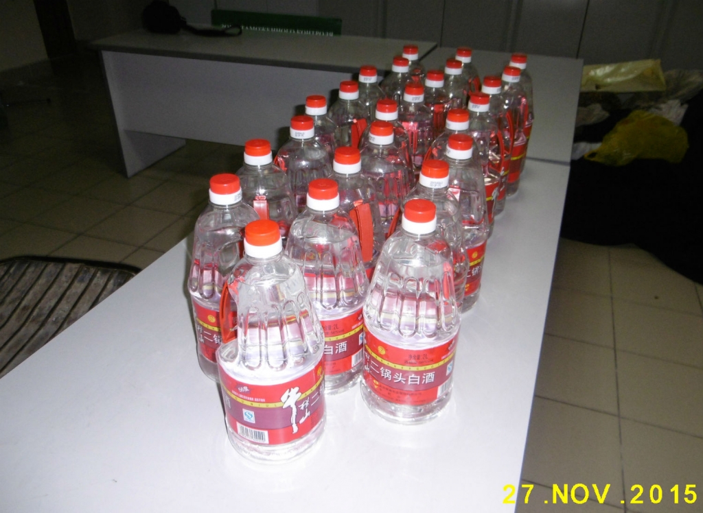 Алкоголь, общим объёмом 50 литров, весом – 49,2 кг был обнаружен во время таможенного оформления багажного вагона поезда в купе проводников. Предварительно гражданин Китая устно заявил об отсутствии товаров, подлежащих таможенному декларированию.