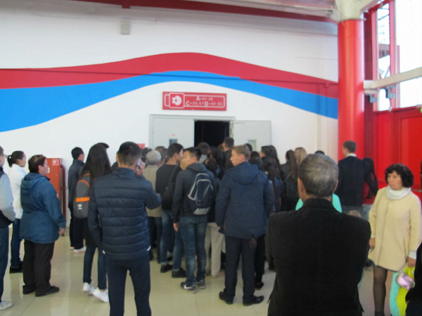 - Мы приехали с Центрального стадиона. Там всего-то три автобуса было. Наверное, успели в зал попасть только те, кто вместился в первый. Мы сели в третий, привезли нас чуть-чуть позже семи часов, и всё – не пускают. Как же так, ведь мы билеты специально покупали ещё за месяц? – поделилась с «Байкал-Dailу» пенсионерка в фойе ФСК.