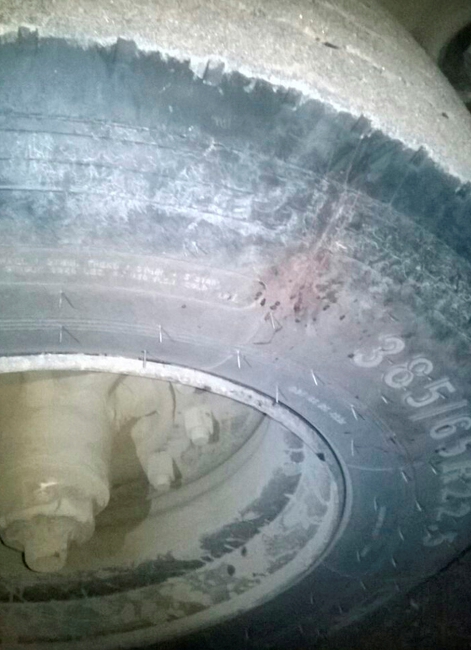 На заднем правом колесе полуприцепа одного из автомобилей обнаружили следы крови.