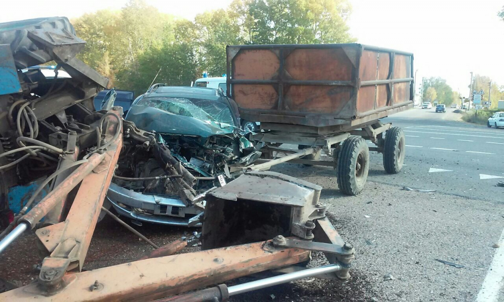 «Тойота» на большой скорости врезалась в его заднюю часть, отчего сельхозтехника опрокинулась на бок.