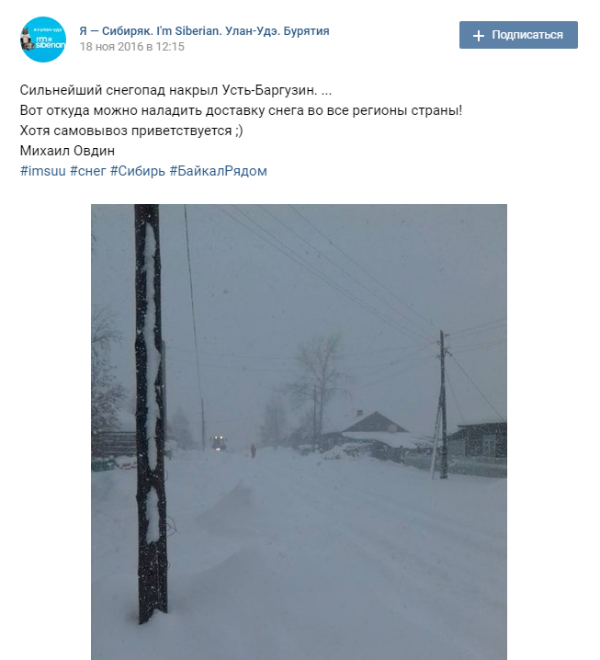 Как сообщал «Байкал-Daily», сегодня с 8 часов введён режим ЧС в двух поселениях Баргузинского района из-за аномальных снегопадов. Это городское поселение «Усть-Багрузинское» и сельское «Адамовское».