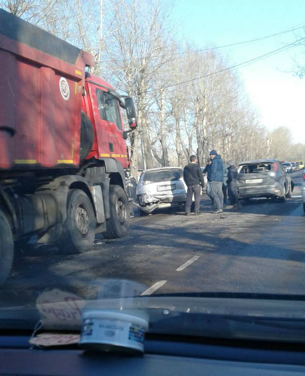 Сегодня около 4 часов дня на улице Иволгинской в районе остановки «5 километр» грузовик врезался в универсал и внедорожник.