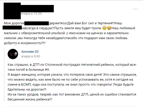 Родные и близкие семьи погибшего ребёнка до сих пор не могут поверить в случившееся, скорбят и приносят родителям свои соболезнования.