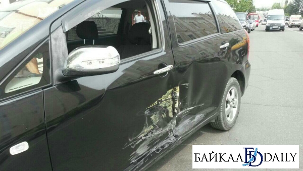Сегодня в районе обеда произошло ДТП напротив Главпочтамта. Жёлтый «Рено Логан», автомобиль службы такси «Максим», совершил столкновение с «Тойотой Виш». Оба автомобиля двигались по улице Сухэ-Батора, намереваясь свернуть на улицу Ленина.