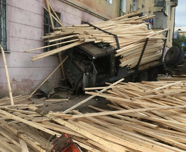 Сегодня в 13:00 в посёлке Загорск произошло ДТП. Там водитель «КамАЗа» врезался в жилой дом по адресу Заиграевская,5.