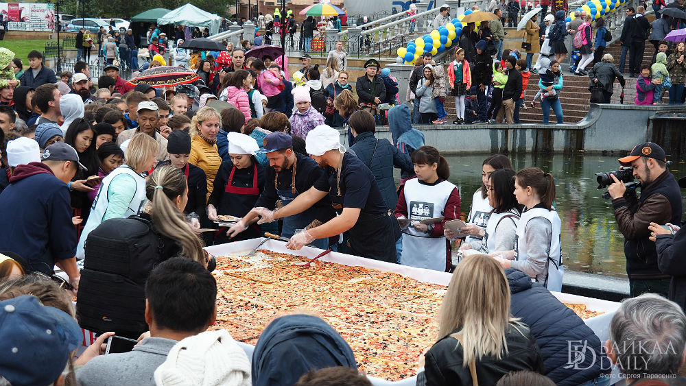 Как сообщал «Байкал-Daily», ко Дню города установили рекорд по приготовлению самой большой пиццы. На изготовление продукта весом 63 килограмма ушло по 20 килограммов теста, сыра, начинки и соуса. Все желающие смогут бесплатно продегустировать изделие.