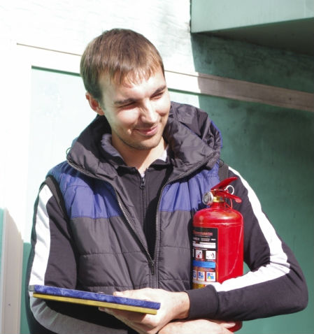 Молодому человеку пришлось одному бороться с огнём. Дмитрий голыми руками попытался оттащить горящую покрышку с крыльца, но из-под неё вырвалось пламя - горело пластиковое уличное покрытие. Он бросился на противоположную сторону улицы и вырвал доску от старого штакетника. С её помощью ему удалось откатить колесо от здания. Ещё несколько минут он потратил на то, чтобы сбить пламя автомобильным ковриком.