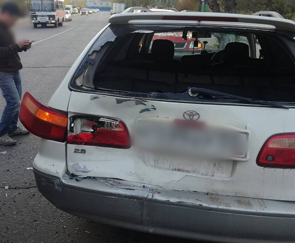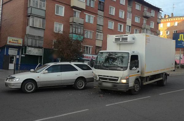 Сегодня вечером, около 18.30, перед перекрёстком по улице Добролюбова грузовой автомобиль «Кантер» протаранил универсал «Тойота Грация»