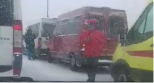 Накануне днём в Улан-Удэ на Селенгинском столкнулись несколько автомобилей. Микроавтобус «Фиат Дукато» врезался в такой же микроавтобус. Тот, в свою очередь, столкнулся с легковым автомобилем «Тойота Спринтер».