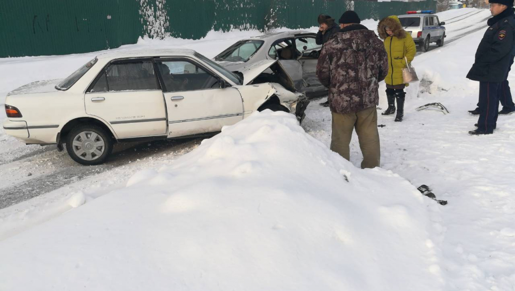 Сегодня утром в Улан-Удэ на заснеженной дороге столкнулись две легковушки. Авария произошла на улице Жуковского.