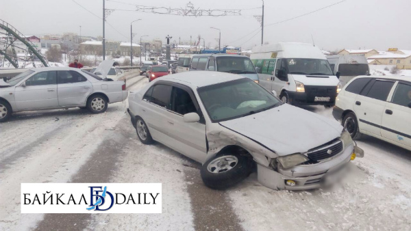 Сегодня утром в Улан-Удэ на Селенгинском мосту столкнулись две легковушки. Девушку за рулём «Тойоты Премио», которая ехала с Левого берега в сторону центра города, занесло на полосу встречного движения.