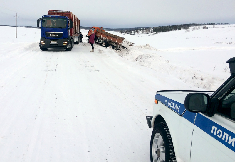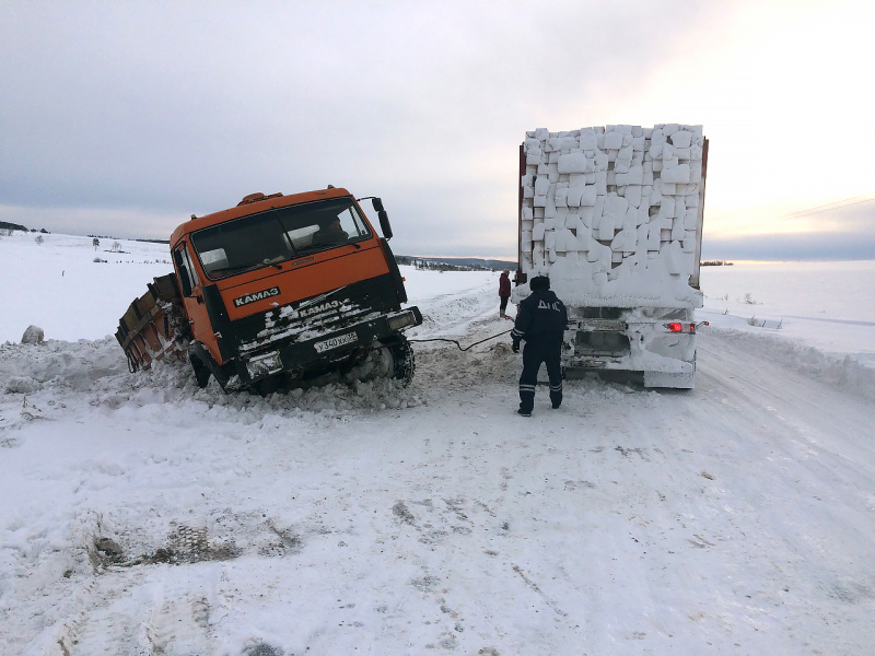 19 декабря днём на 22 километре автодороги «Иркутск – Оса – Усть-Уда» местный житель, управляя грузовиком «КамАЗ», случайно выехал за дорожное полотно и очутился в сугробе.