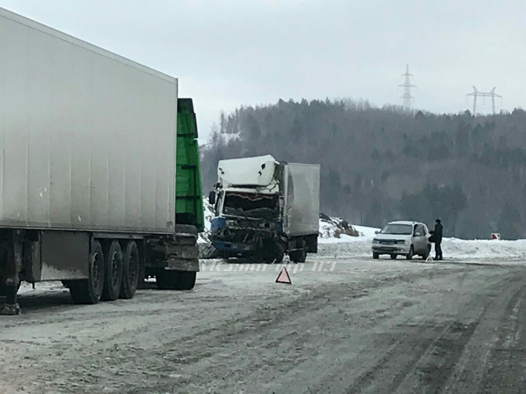 Сегодня утром в посёлке Выдрино произошло лобовое столкновение двух большегрузов. Авария произошла на заснеженной трассе.