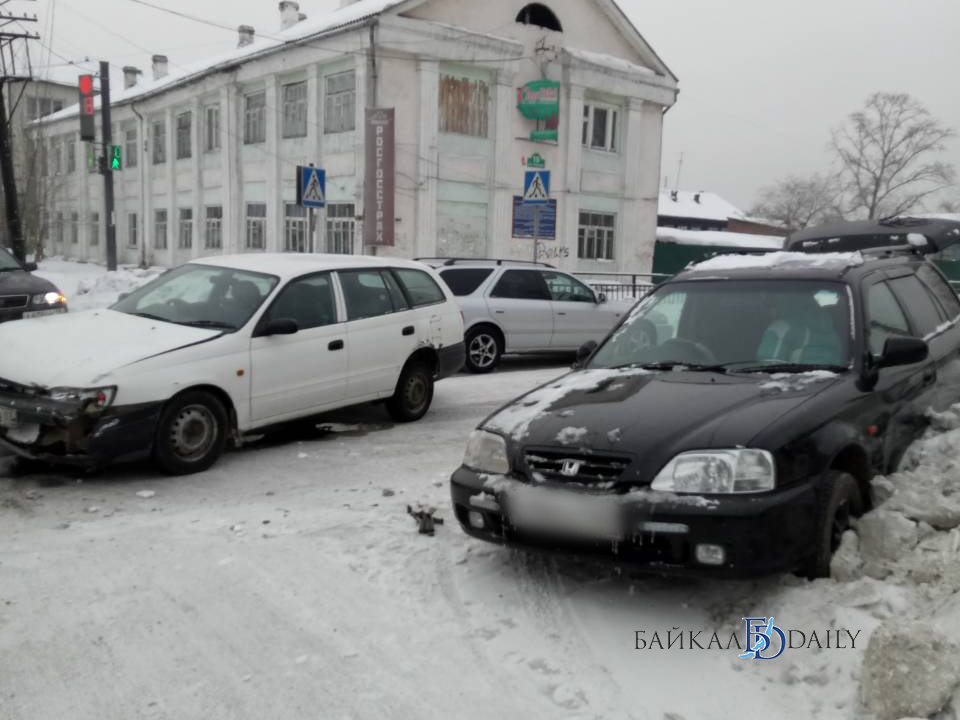 Сегодня в Улан-Удэ девушка на «Тойота Калдина» пыталась проехать перекрёсток на красный сигнал светофора, что закончилось столкновением с другим автомобилем