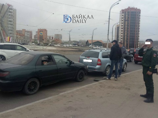 Как стало известно «Байкал-Daily», накануне вечером на круговом движении на Богатырском мосту произошло ДТП. Там столкнулись «Тойота Карина», за рулём которой был военнослужащий, и «Шевроле».