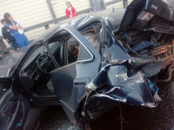 «Матиз» попал под удар первым. «Королле» тоже прилично досталось – была сильно помята задняя часть. Но малолитражка оказалась между бетоновозом и «Тойотой» и была полностью смята.