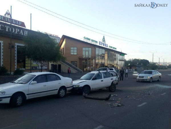 Водитель «Тойота Марк II», следовавший в сторону центра Улан-Удэ, стал виновником аварии у ночного клуба «Чаплин».