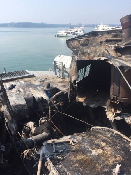 В первые минуты тушение производилось с борта соседнего теплохода. Прибывшие огнеборцы в считанные минуты ликвидировали пожар в моторном отсеке на площади 42 квадратных метров.