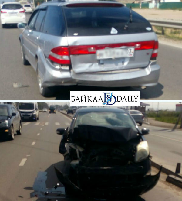 Сегодня днём в микрорайоне Левый берег Улан-Удэ в посёлке Солдатский произошло ДТП. Столкнулись «Тойота Витц» и «Хонда Аккорд».
