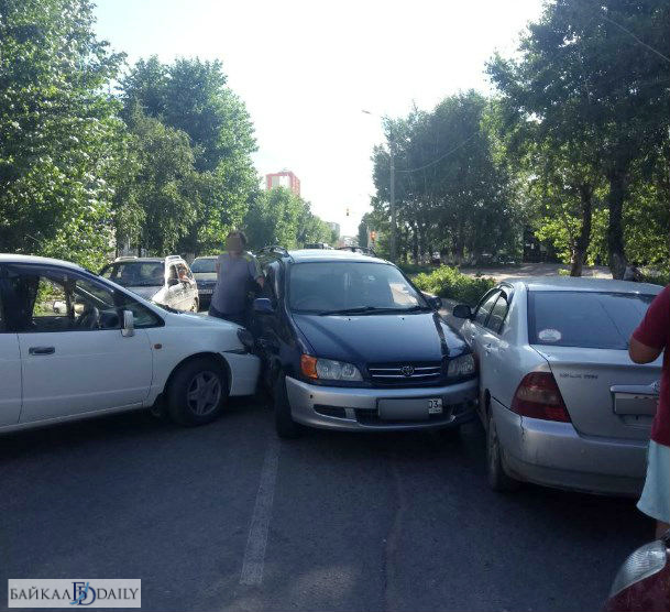 Сегодня около 18 часов на улице Трубачеева в Улан-Удэ произошло необычное ДТП. Автомобиль «Тойота Ипсум» всего за пять минут дважды попал в аварию.