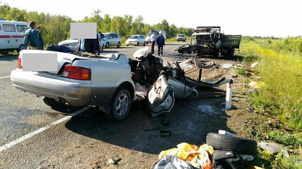 В результате столкновения на месте ДТП погибли 59-летний водитель и четыре пассажира легкового автомобиля – мужчины 33 и 48 лет и женщины 52 и 20 лет. Пострадали водитель и пассажир грузовика.