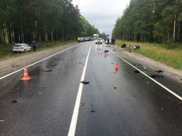 В результате аварии водитель мотоцикла от полученных телесных повреждений скончался на месте происшествия. 34-летняя женщина за рулём «Ниссана», а также двое детей в возрасте 3 и 9 лет получили незначительные телесные повреждения.