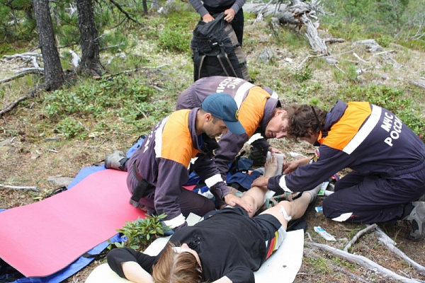 Мужчина, как смог, наложил на повреждённую ногу шину, привязав к ней полотенцами прямую палку. Он поставил палатку, помог перебраться туда жене, оставил ей продукты и воду, а сам пошёл к турбазе. В отсутствие сотовой связи выход был только один – вызвать спасателей по спутниковому телефону. Более 5 часов он спускался к турбазе и уже поздно вечером спасатели получили сигнал о происшествии.