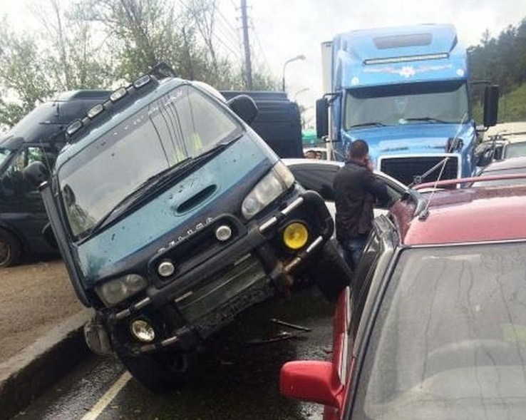 Очевидцы в социальных сетях сообщают, что значительные повреждения получили четыре автомашины, при этом микроавтобус съехал на обочину и остановился в метре от обрыва, уточняет «Интерфакс».