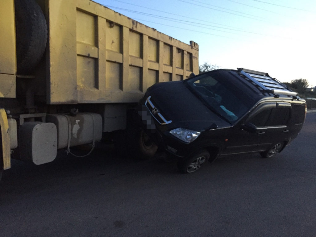Налетев на большегруз, «Хонда» повисла и чуть не опрокинулась