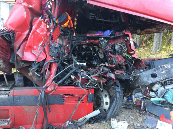 Грузовики получили серьёзные механические повреждения. Переднюю часть «Вольво» буквально снесло от удара.