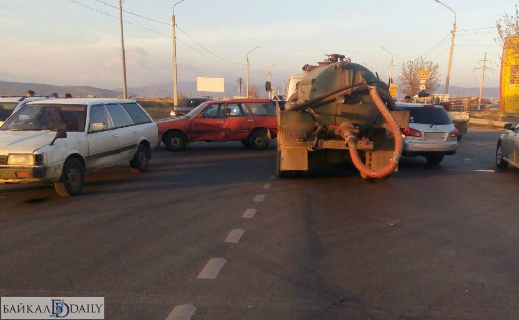 В центре Улан-Удэ столкнулись «КамАЗ» и 4 легковушки