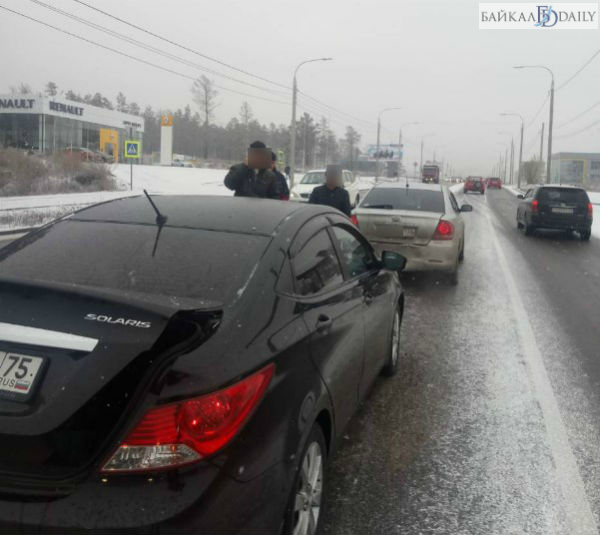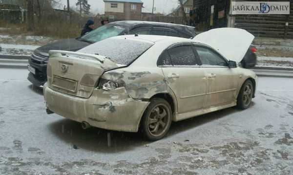 В 9.30 часов из-за гололёда произошла также авария в 102 квартале. Перед перекрёстком водитель Hyundai Solaris протаранил Toyota Allion.