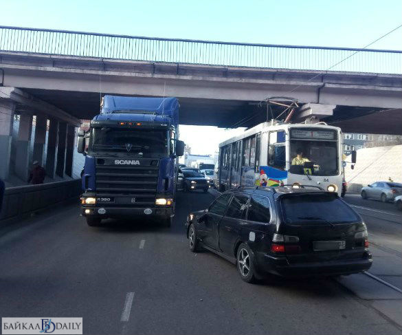 - Водитель большегруза под путепроводом при перестроении совершил столкновение с «Тойотой Короллой», которая двигалась справа. В результате столкновения «Короллу» развернуло перед фурой, - сообщил «Байкал-Daily» очевидец.
