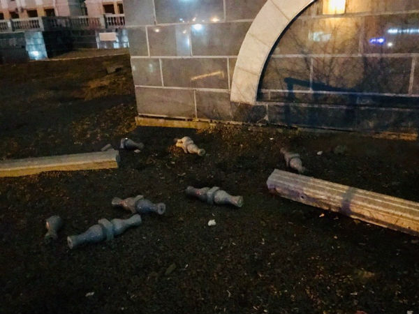 На площадке позади Бурятского театра оперы и балета неизвестные выломали перила. Судя по всему, ЧП произошло в тёмное время суток. В паблике «Аноним 03» появились фото сломанных перил, лежащих на земле.