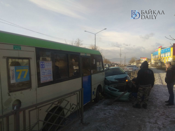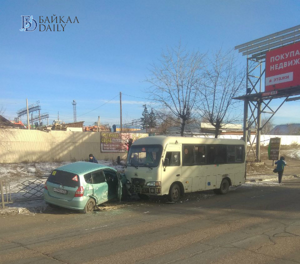 Как стало известно «Байкал-Daily», сегодня в обеденное время на улице Борсоева в Улан-Удэ произошло ДТП. По словам очевидца аварии, авария произошла недалеко от остановки «Гараж». Девушка за рулём «Хонды Фит», ехавшая со стороны Левого берега начала разворот и врезалась в маршрутный автобус №77, в котором находились пассажиры.