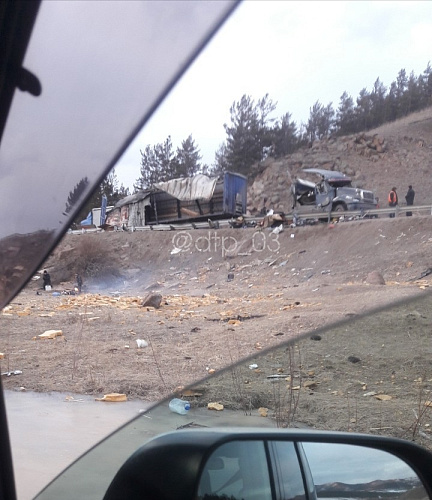 Как сообщают очевидцы, ДТП произошло около села Бурнашево, тягач ехал со стороны Улан-Удэ. О пострадавших не сообщается.