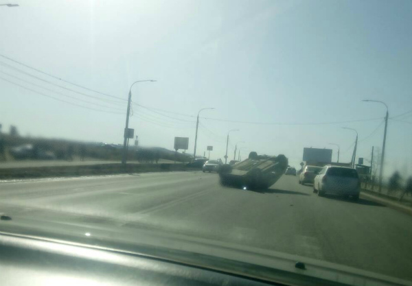 После столкновения «Хонда Аккорд» опрокинулась и встала на крышу. В результате ДТП пострадал водитель «Аккорда».