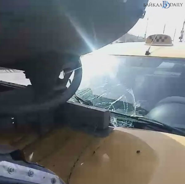 От удара лобовое стекло такси треснуло. Машина получила и другие повреждения передней части. К счастью, водитель отделался испугом, а в салоне легковушки не было пассажиров.