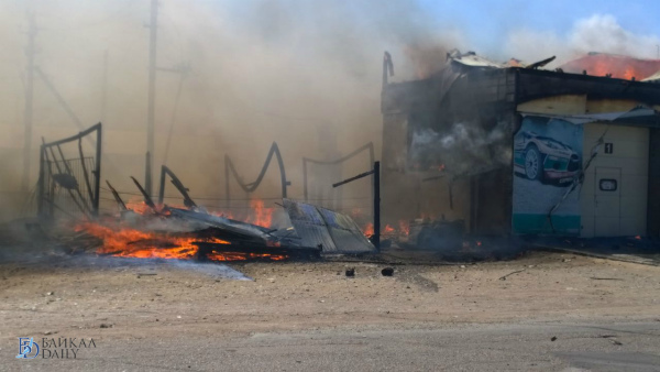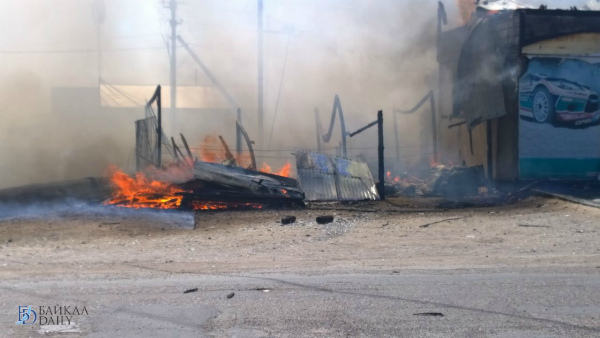 Сегодня днём в микрорайоне Солдатский в Улан-Удэ произошёл пожар, вспыхнули пункт обмена газовых баллонов и здание СТО. По словам очевидцев, заискрила электроподстанция и потом пламя перекинулось на строения.