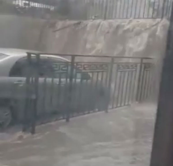 Как сообщал «Байкал-Daily», днём в субботу на Улан-Удэ обрушился сильный ливень, местами прошёл град. Парковка напротив входа в Центральный рынок, расположенная под дорожной развязкой, превратилась в бушующий водопад. Огромная масса воды с высоты обрушилась на машины внизу.