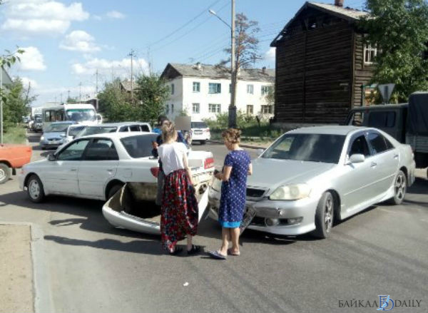 Сегодня около 17 часов на улице Пищевая в Улан-Удэ произошла дорожная авария. Молодые люди на «Тойоте Карине» ехали в направлении железнодорожного переезда, когда в них врезалась девушка на «Тойоте Марк II».