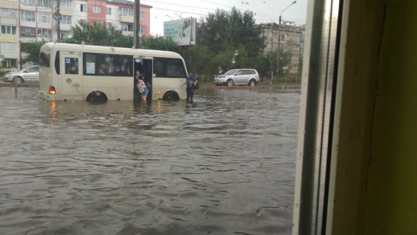 Накануне во второй половине дня в столице Бурятии разыгралась непогода – сильный дождь, ветер и град. Из-за обильных осадков машины на городских улицах машины ломались, попадали в ДТП, получали повреждения из-за града, люди же вынуждены были ходить практически по колено в воде.